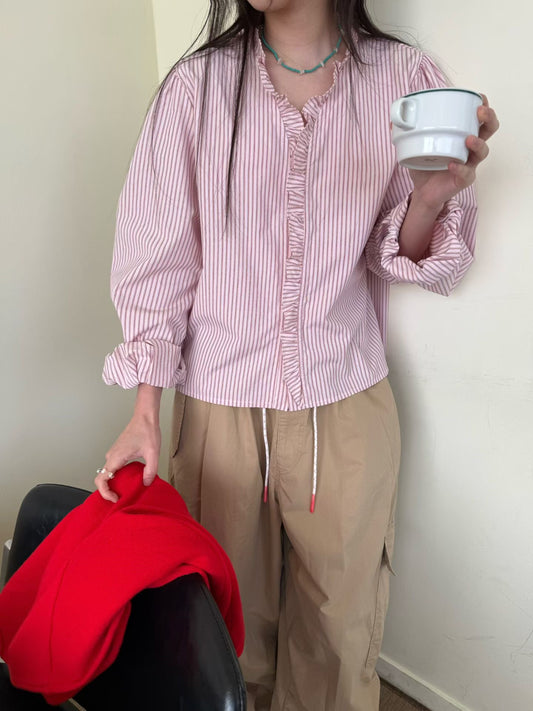 ruffle striped blouse (blue) 現貨