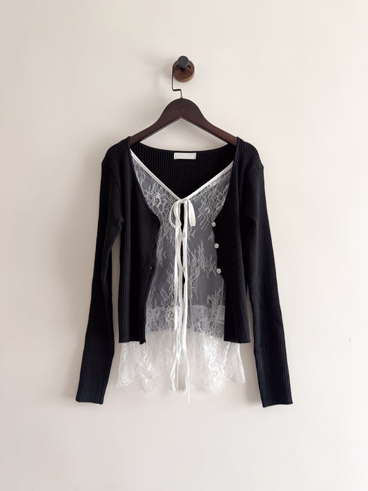 lace knit cardigan(grey/ivory/black)