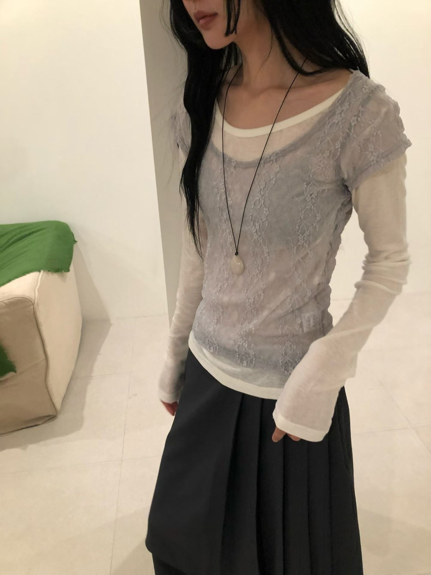 lace set top (grey/ivory/black)