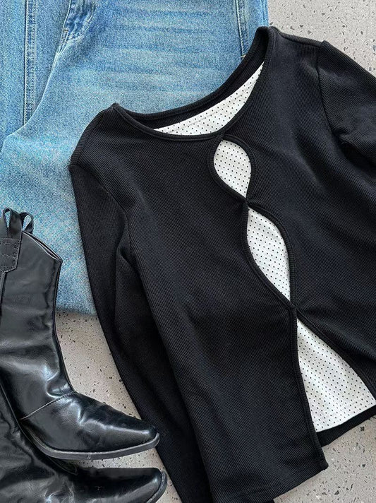 cut out tee(black/purple)