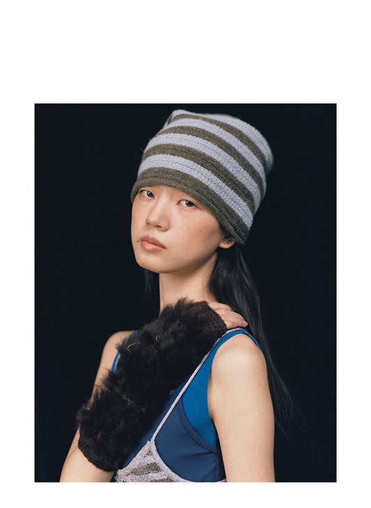 韓國代購:AWESOME NEEDS OVER FIT KNIT HAT (STRIPE BLUE/SRTIPE CHARCOAL) <限時新貨9折優惠1/12 10PM截單>