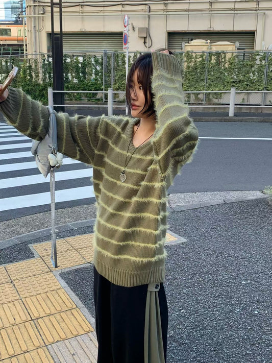 韓國特價款:striped sweater(ivory/green)