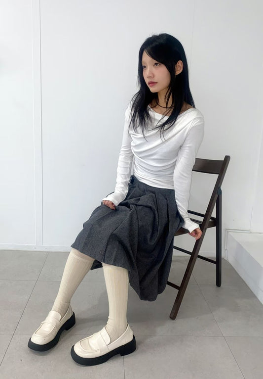 韓國特價款:off shoulder tee (white) 現貨