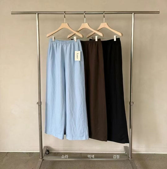 summer sale- Linen cool pants(light blue/black) 現貨