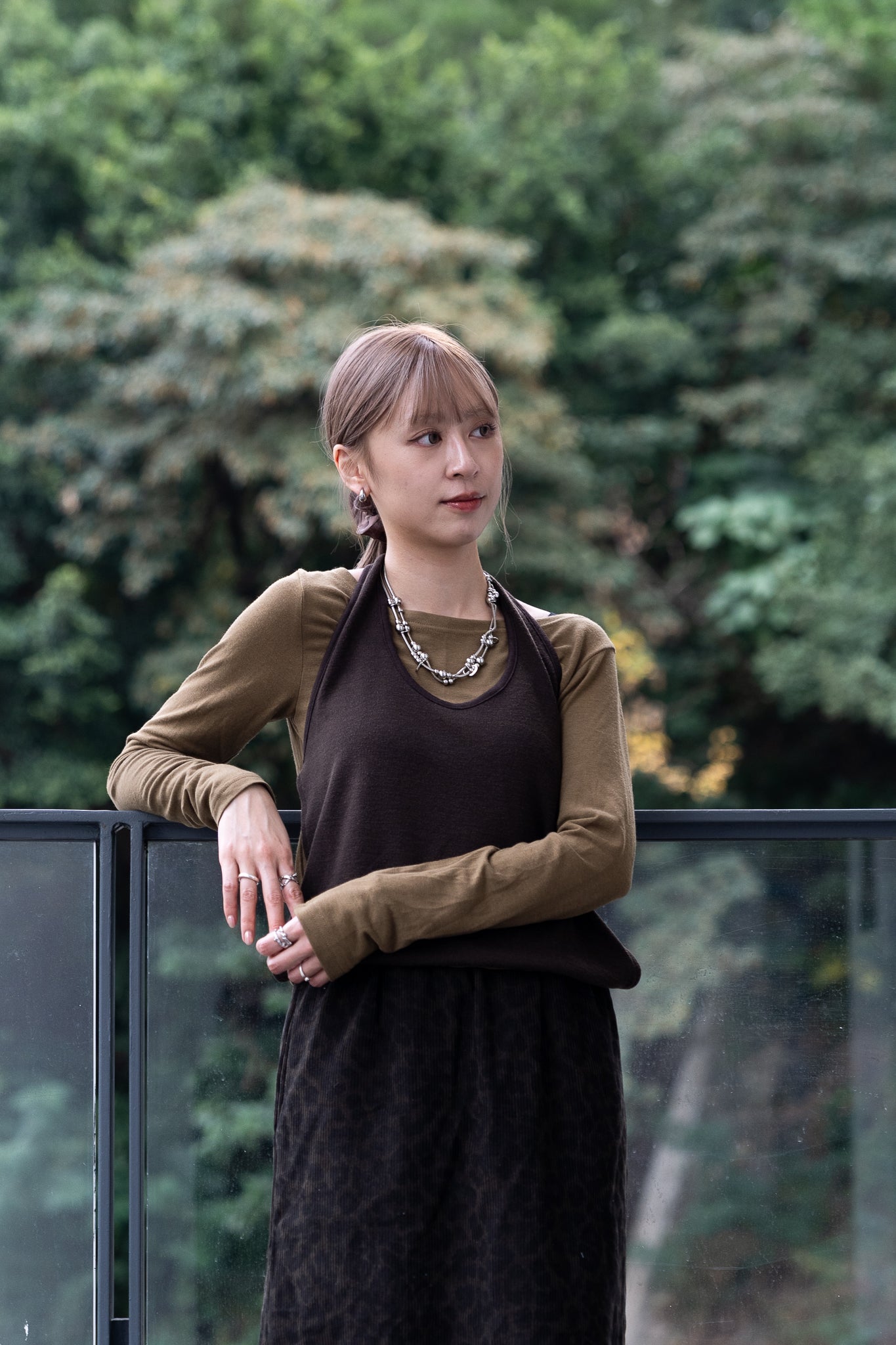 layered tee (white/brown)