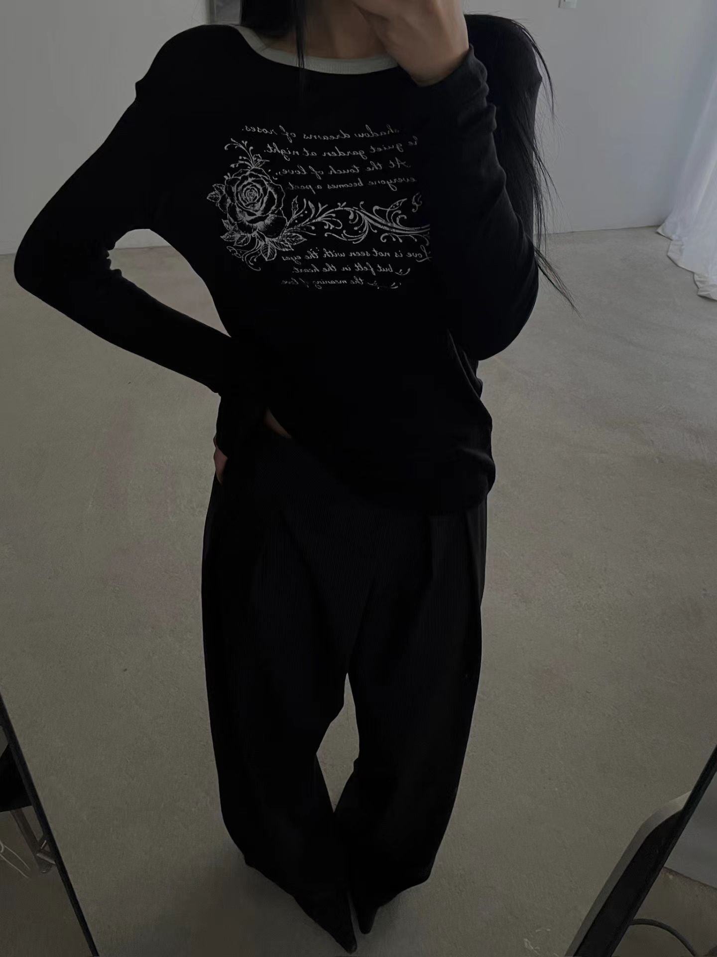 rose tee (ivory/black/charcoal/pink)