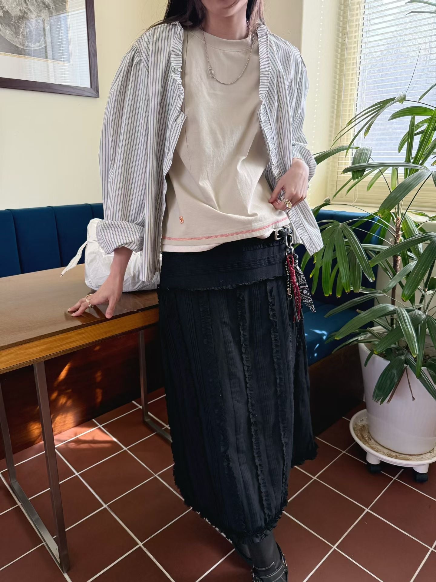 ruffle striped blouse (blue/pink/black)