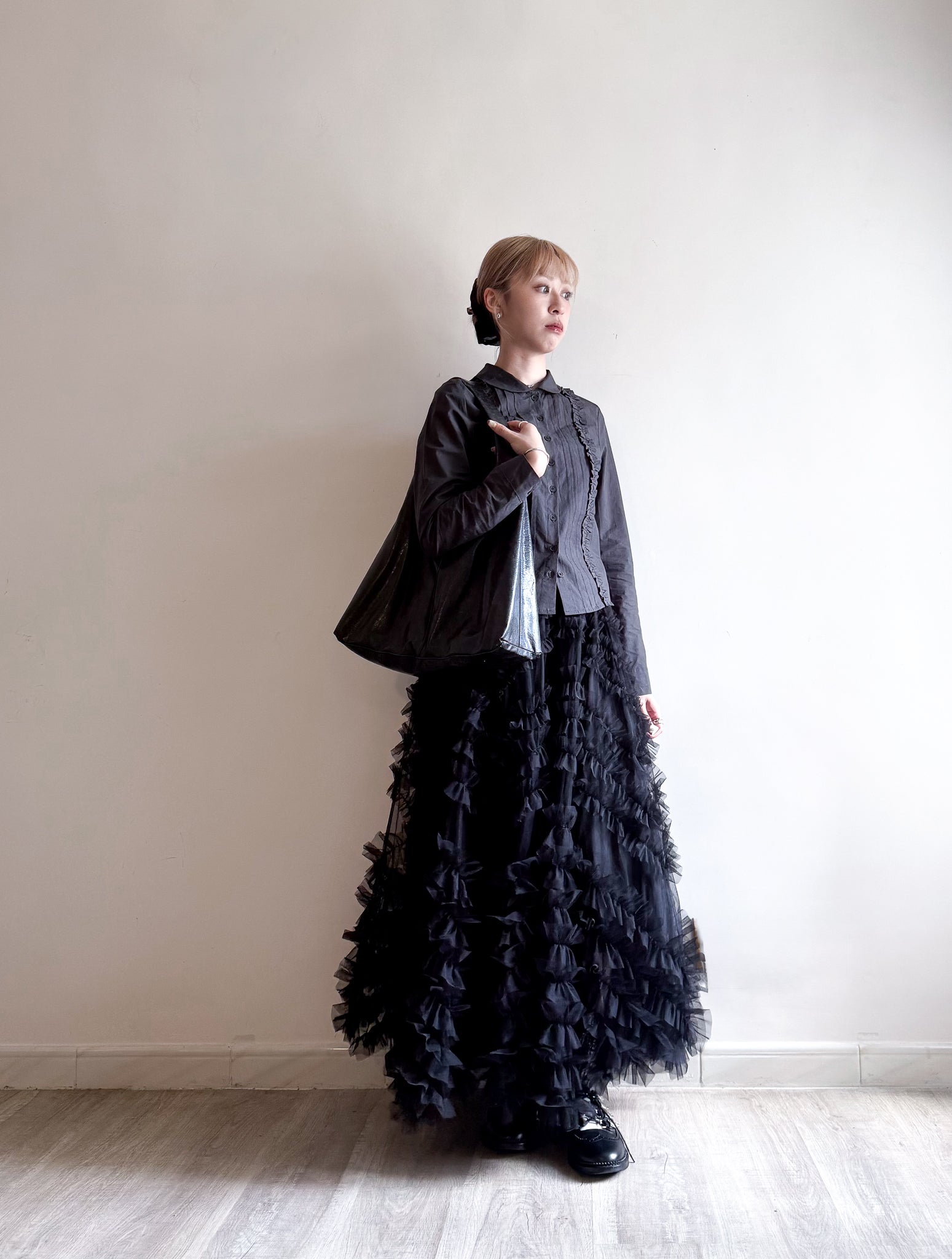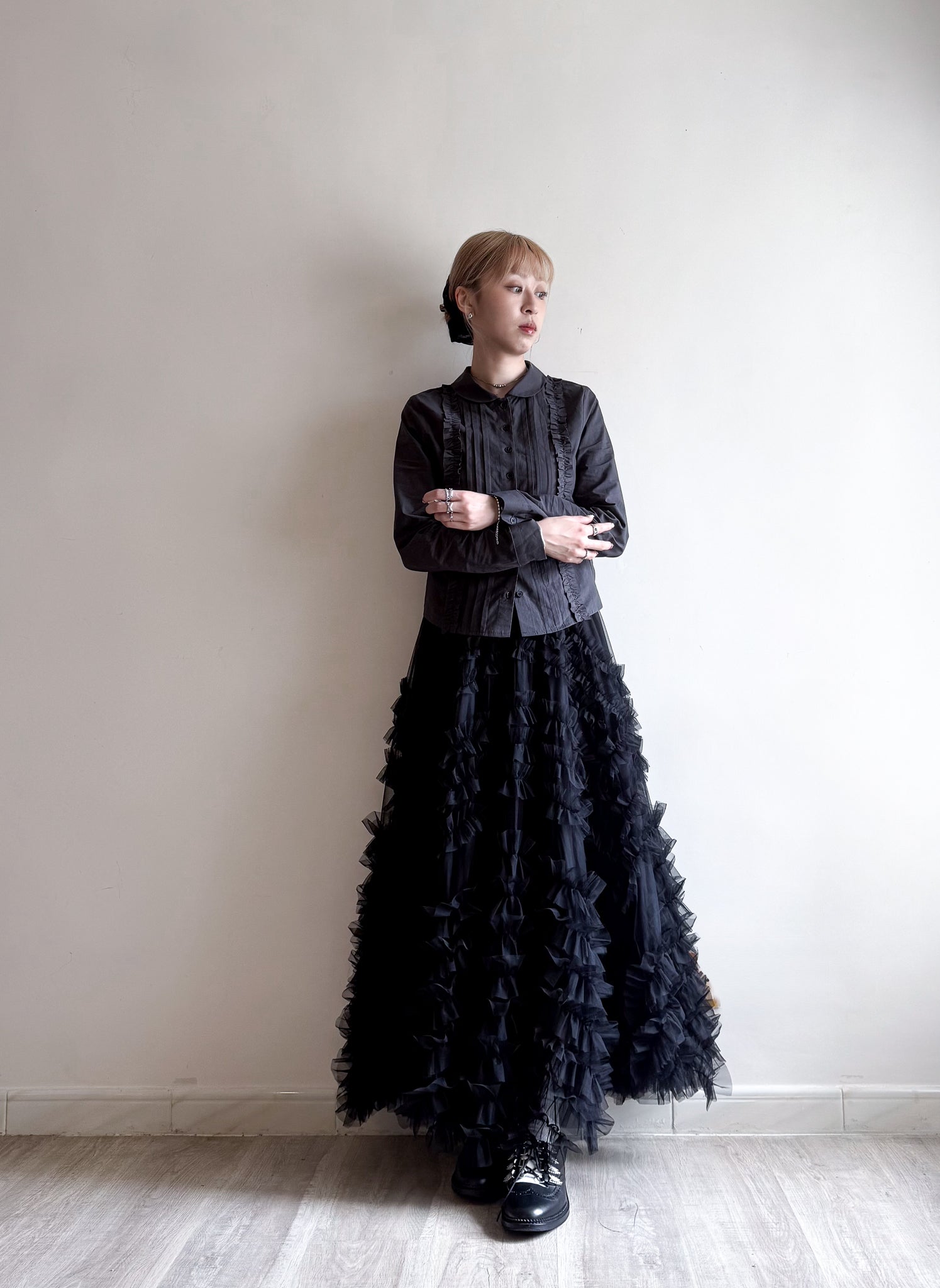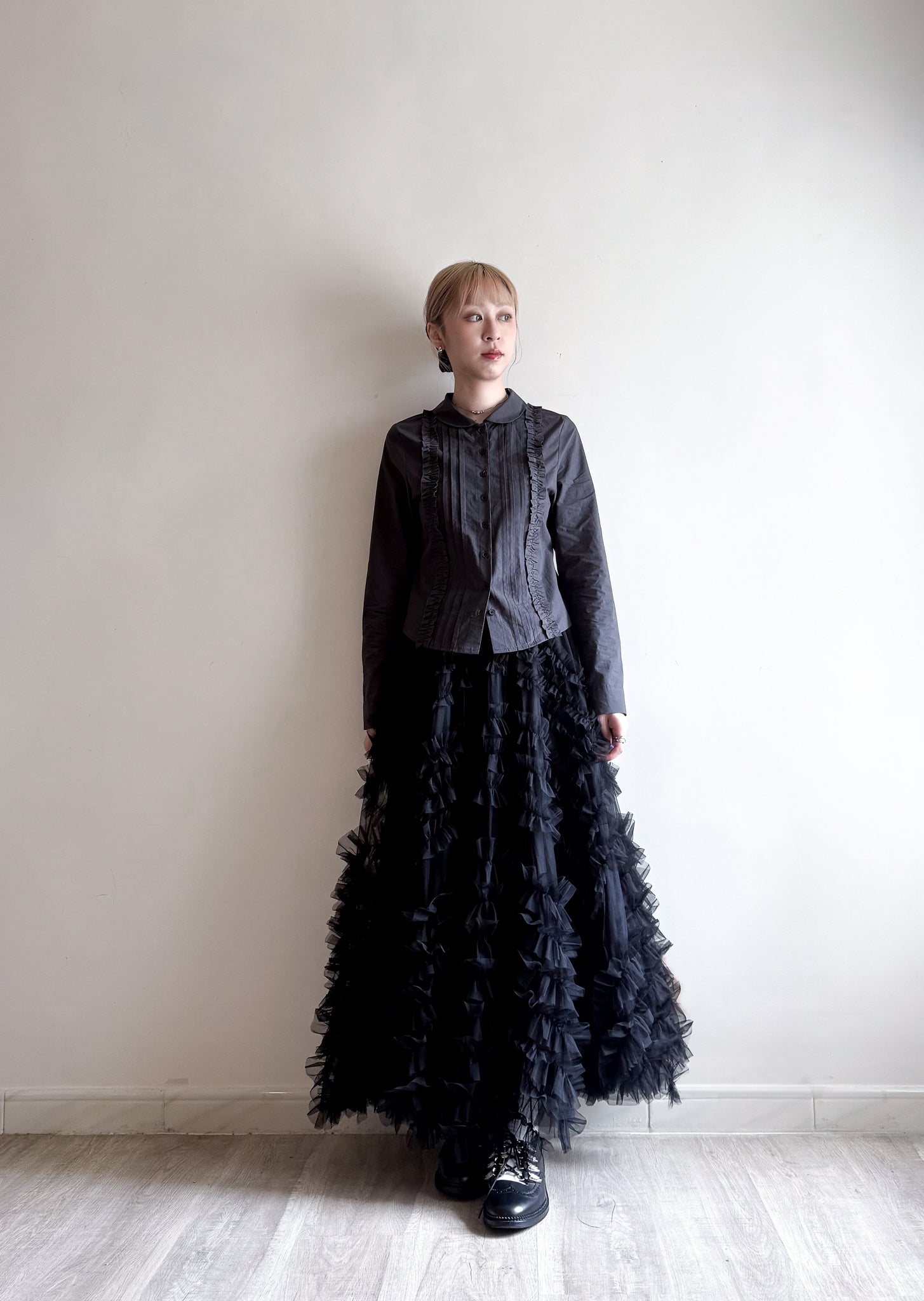 slim cut shirt(charcoal/white) 現貨