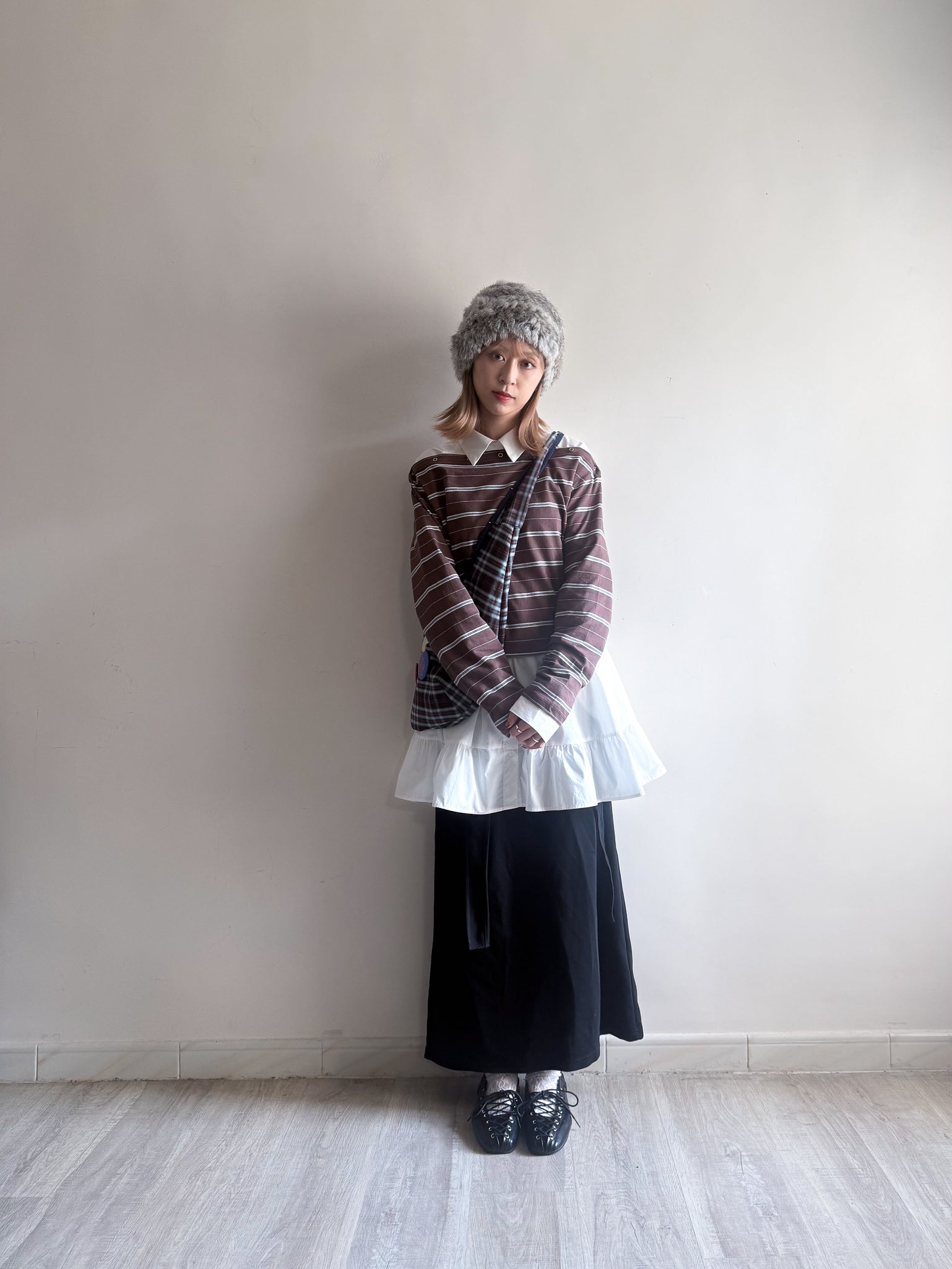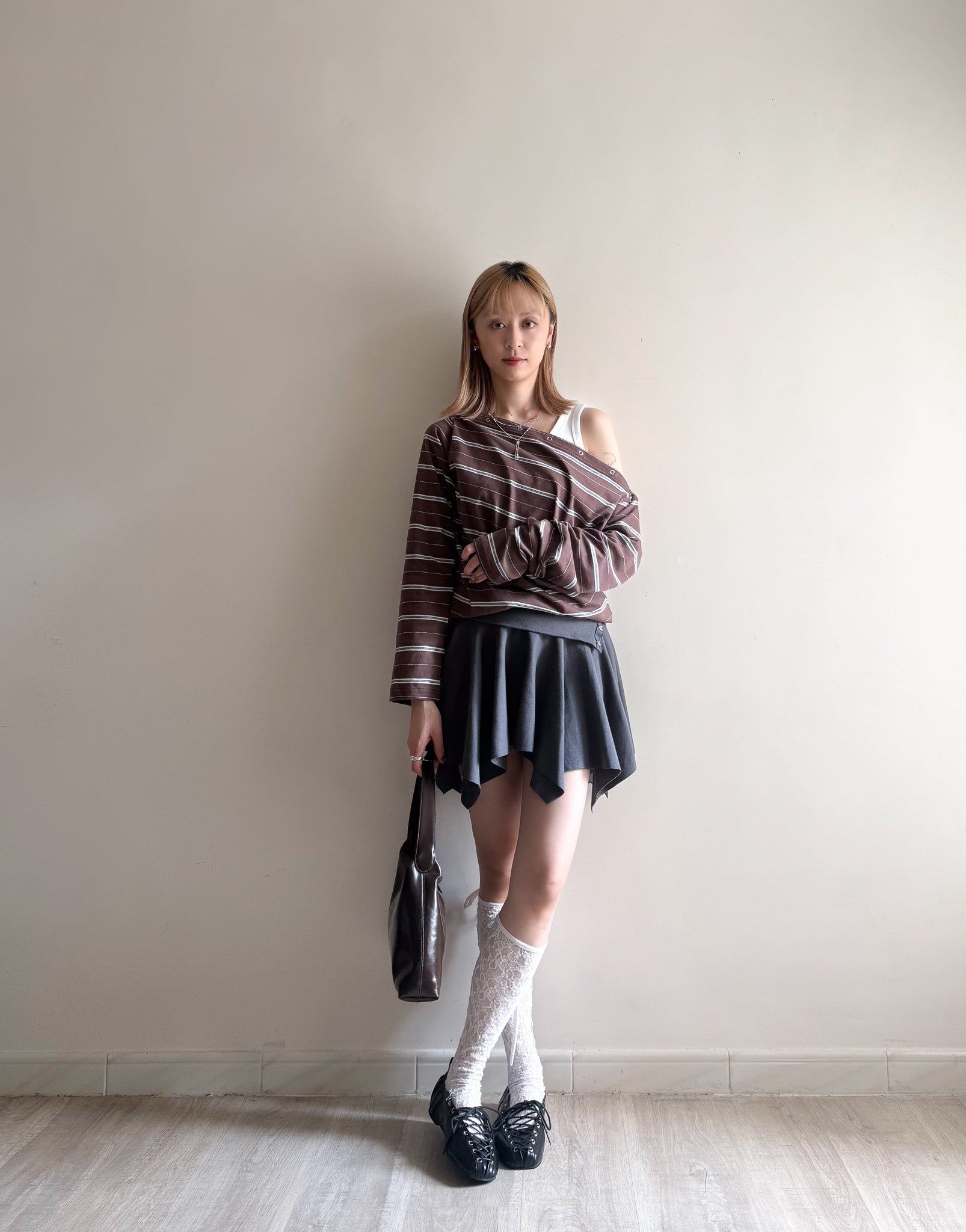 striped off shoulder top (brown/navy/grey)