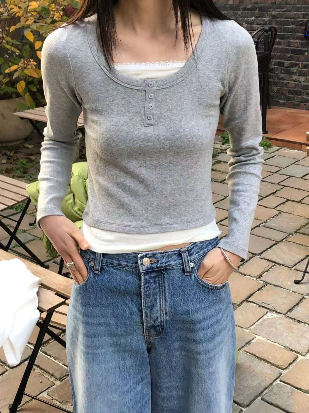 year end sale -2-in 1 button tee (matcha/grey/brown/black)